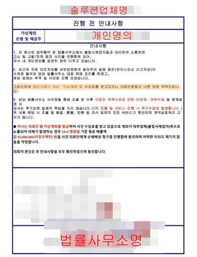 사채 피해 카페 운영자 A씨는 "채무자로 하여금 마치 법률사무소가 본 건의 주관기관인 듯한 인상을 준다"며 "이 같은 방식이 채무자를 혼란에 빠뜨리는 사실상 기만 행위"라고 지적했다.
