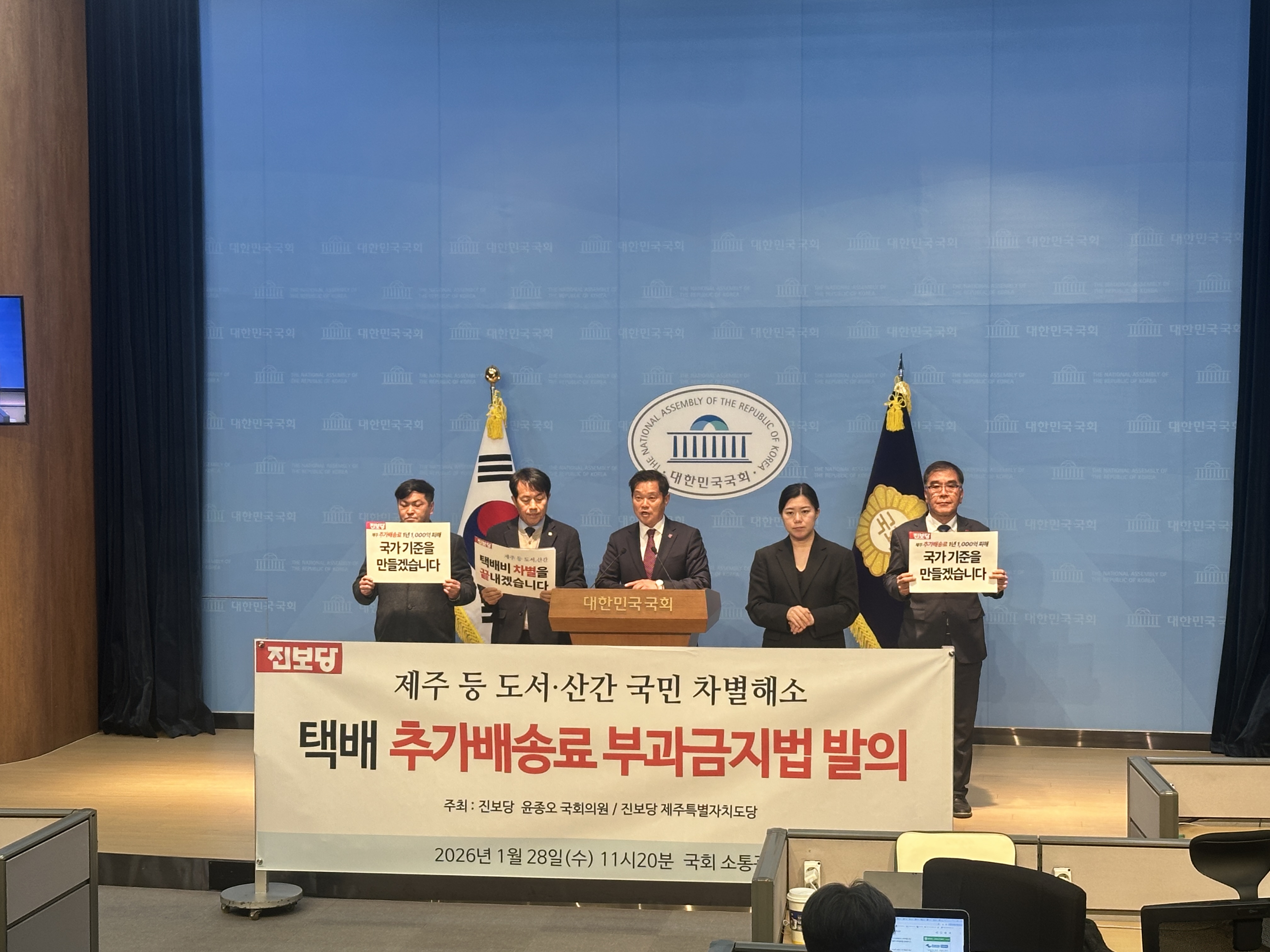송 지부장은 "이 법안은 택배 추가 배송비의 자의적 부과를 금지하고 도서산간 이유로 배송을 거부하는 행위를 막으며 국민 누구나 동등한 생활 물류 서비스를 받을 권리를 보장하는 내용을 담고 있다"며 "도서산간에 산다는 이유로 삶의 비용을 더 부담해야 할 이유는 없다"고 말했다.